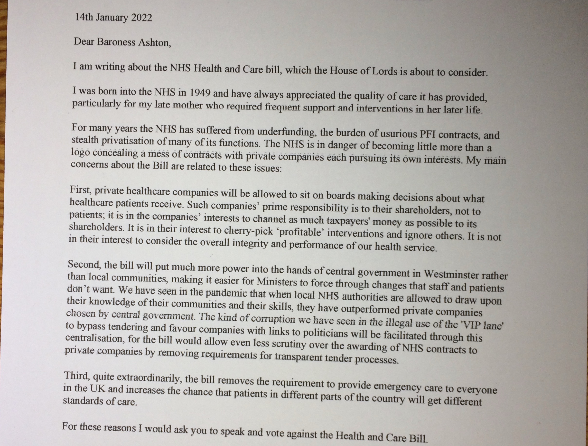 We know that the government's plans are deeply unpopular with patients, and through this letter-writing campaign we wanted to ensure that members of the House of Lords who have the power to determine the fate of the bill heard directly from NHS users about why they are worried. Supporters included personal testimonials and stories of the impact that the NHS had had on their life, as well as adding in tailored messaging based on research about each individual Lord to make letters as personalised as possible.